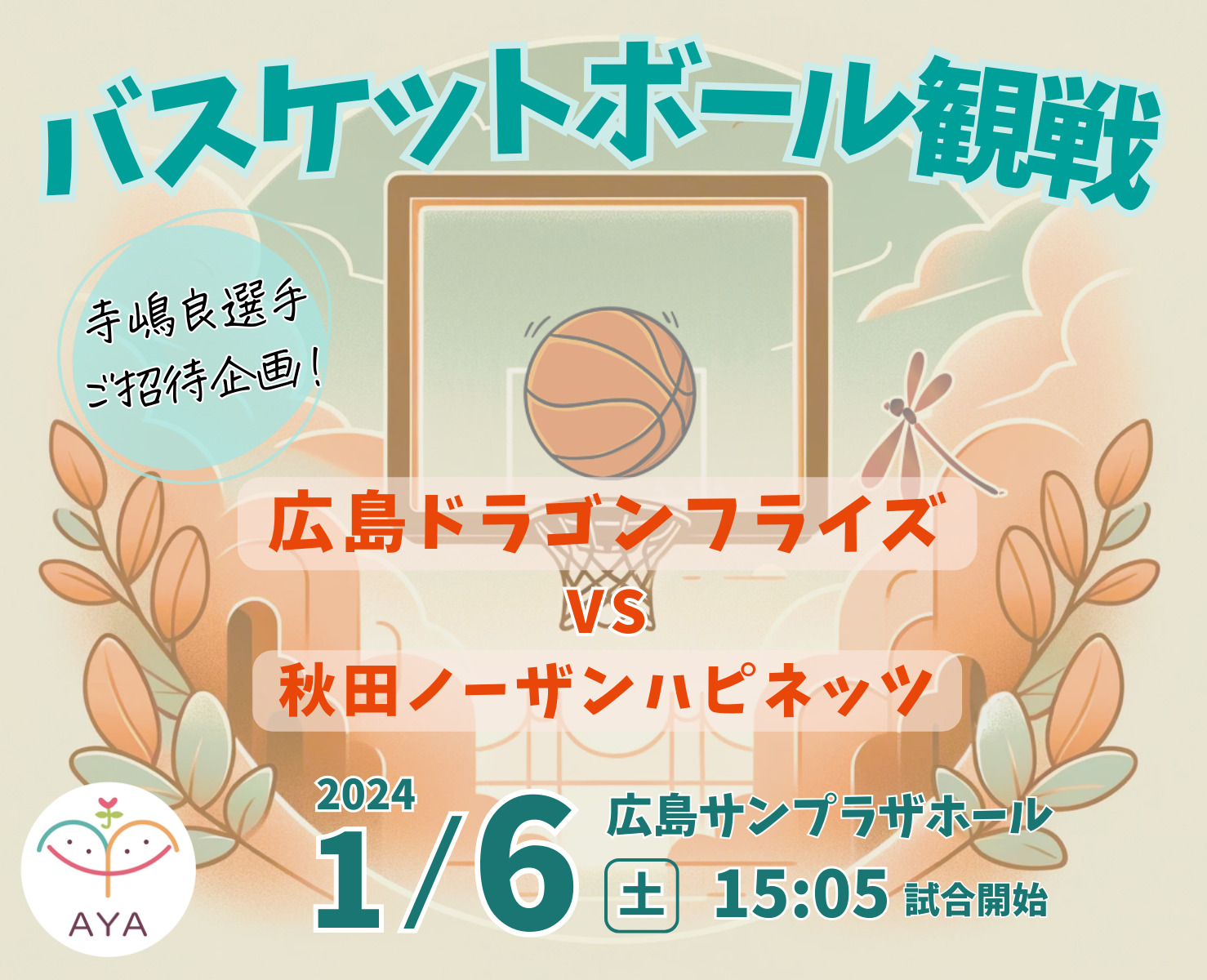 バスケットボール観戦 広島ドラゴンフライズ(vs秋田ノーザンハピネッツ)寺嶋良選手ご招待企画!