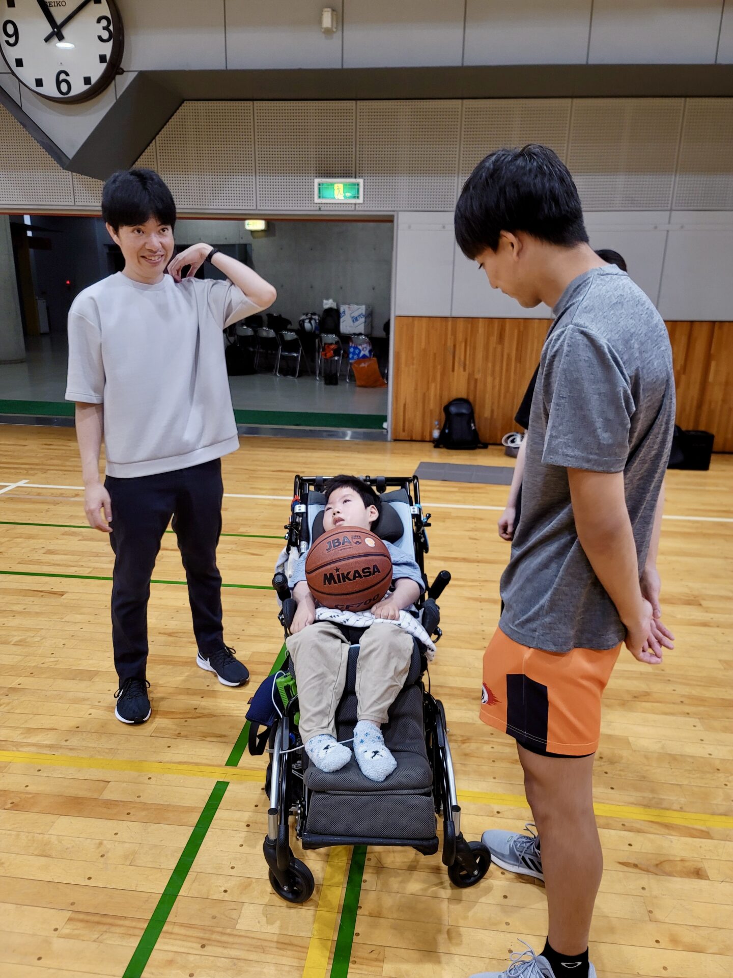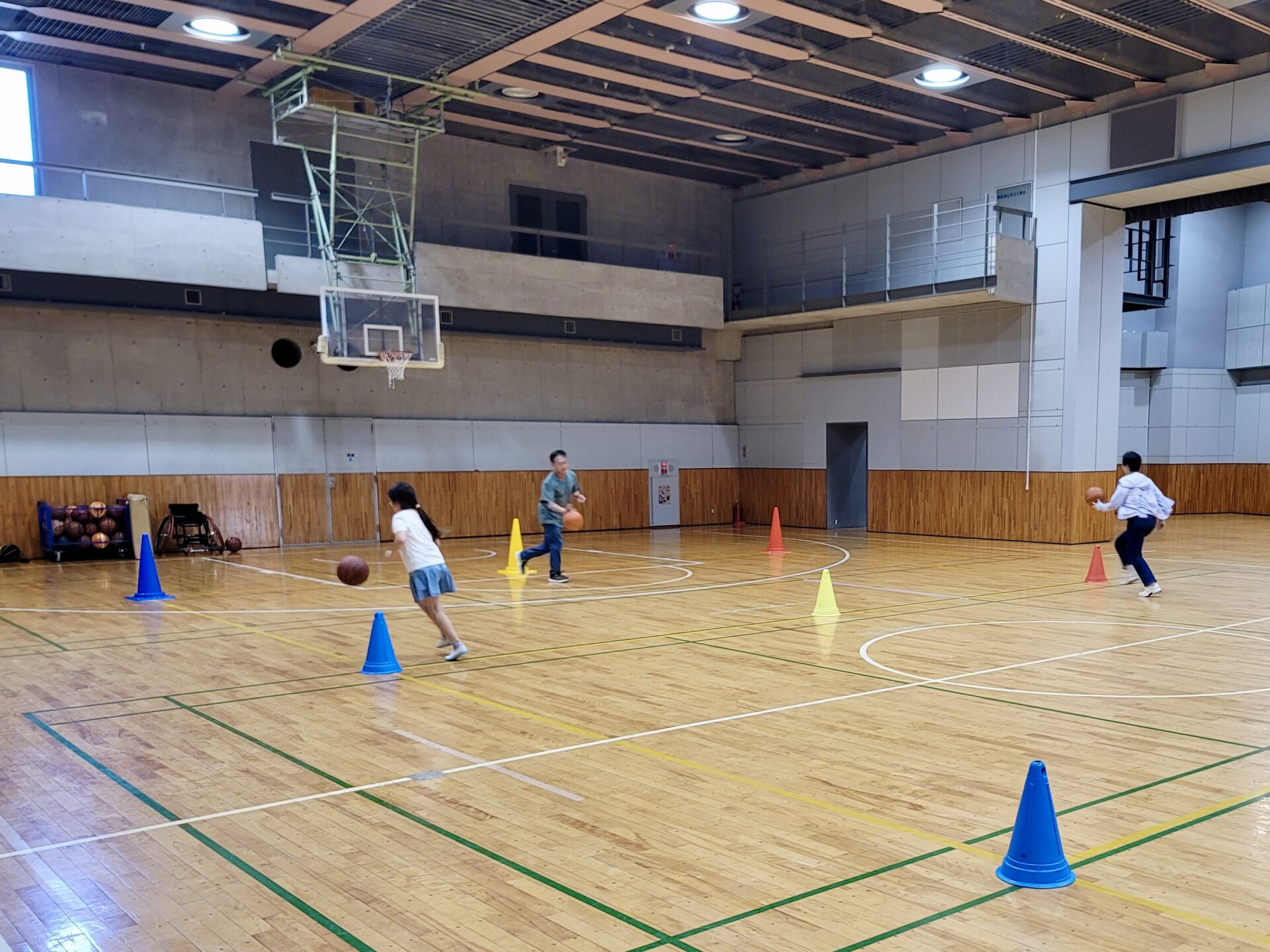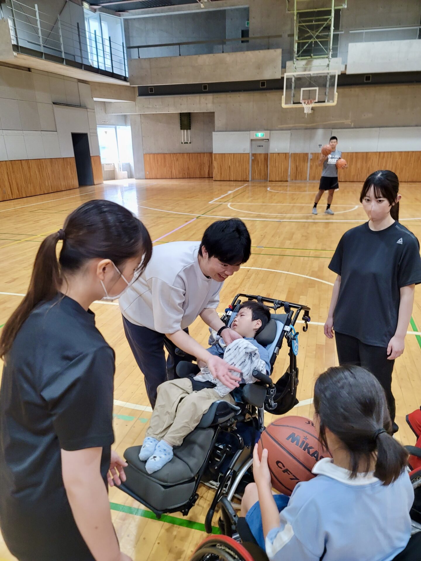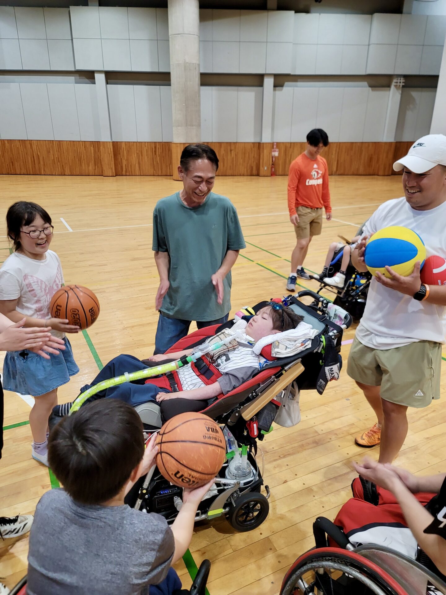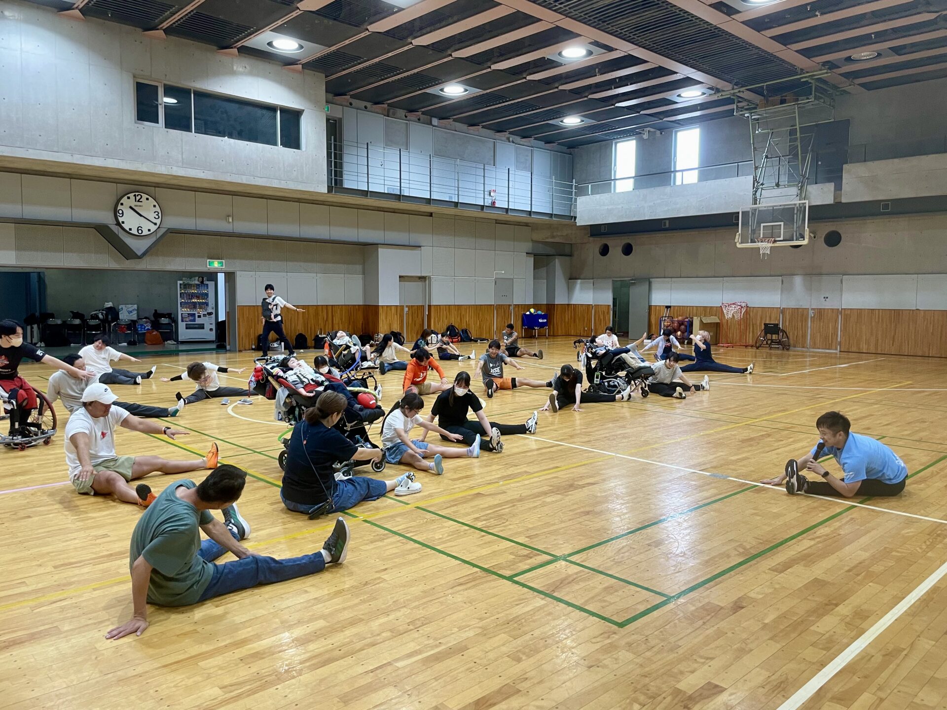 子どもたちはみんなで車いすバスケを体験しました。