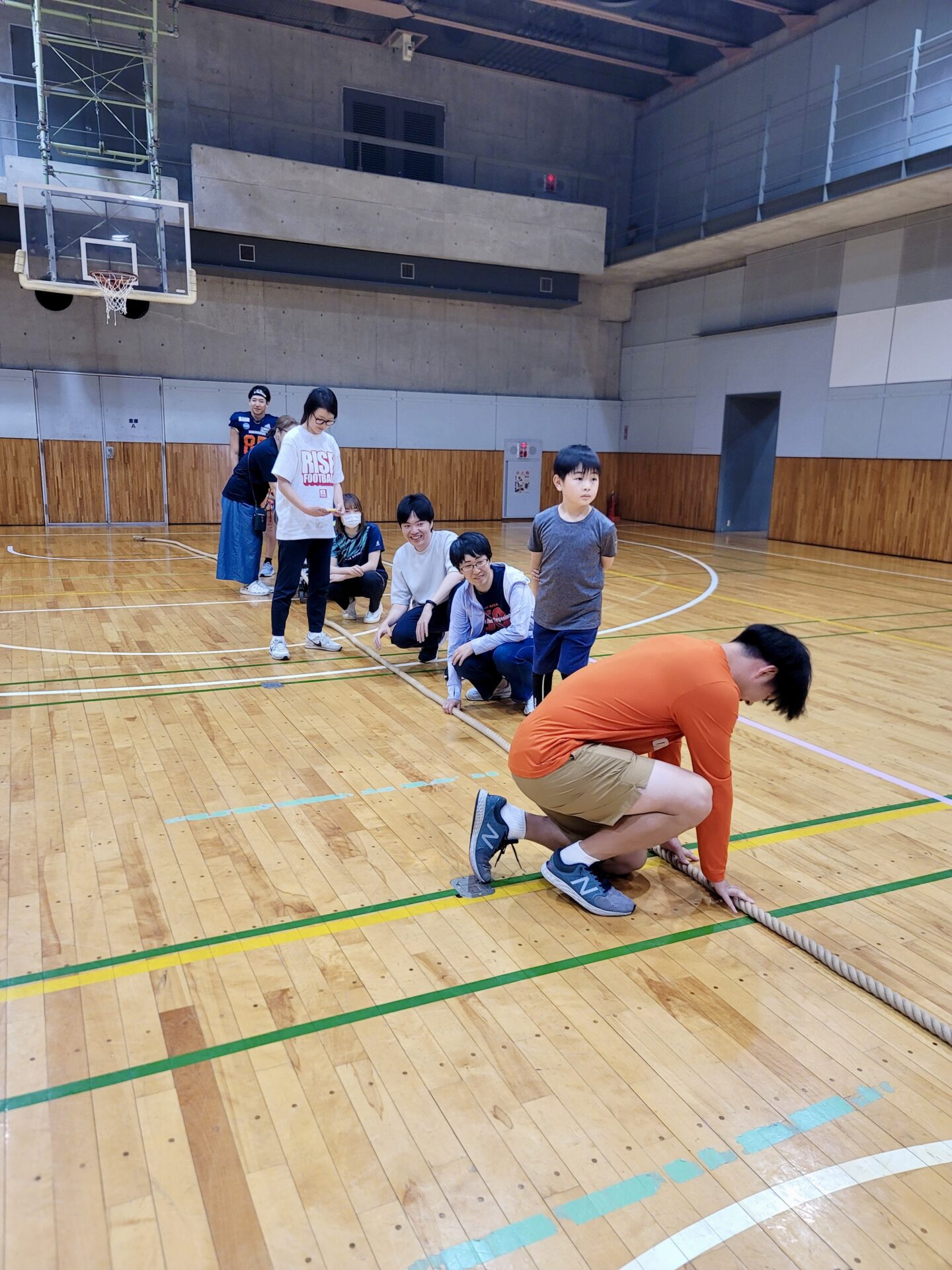 最後は、屈強なアメフト選手チーム(左) vs 他全員チーム(右)の綱引き対決!