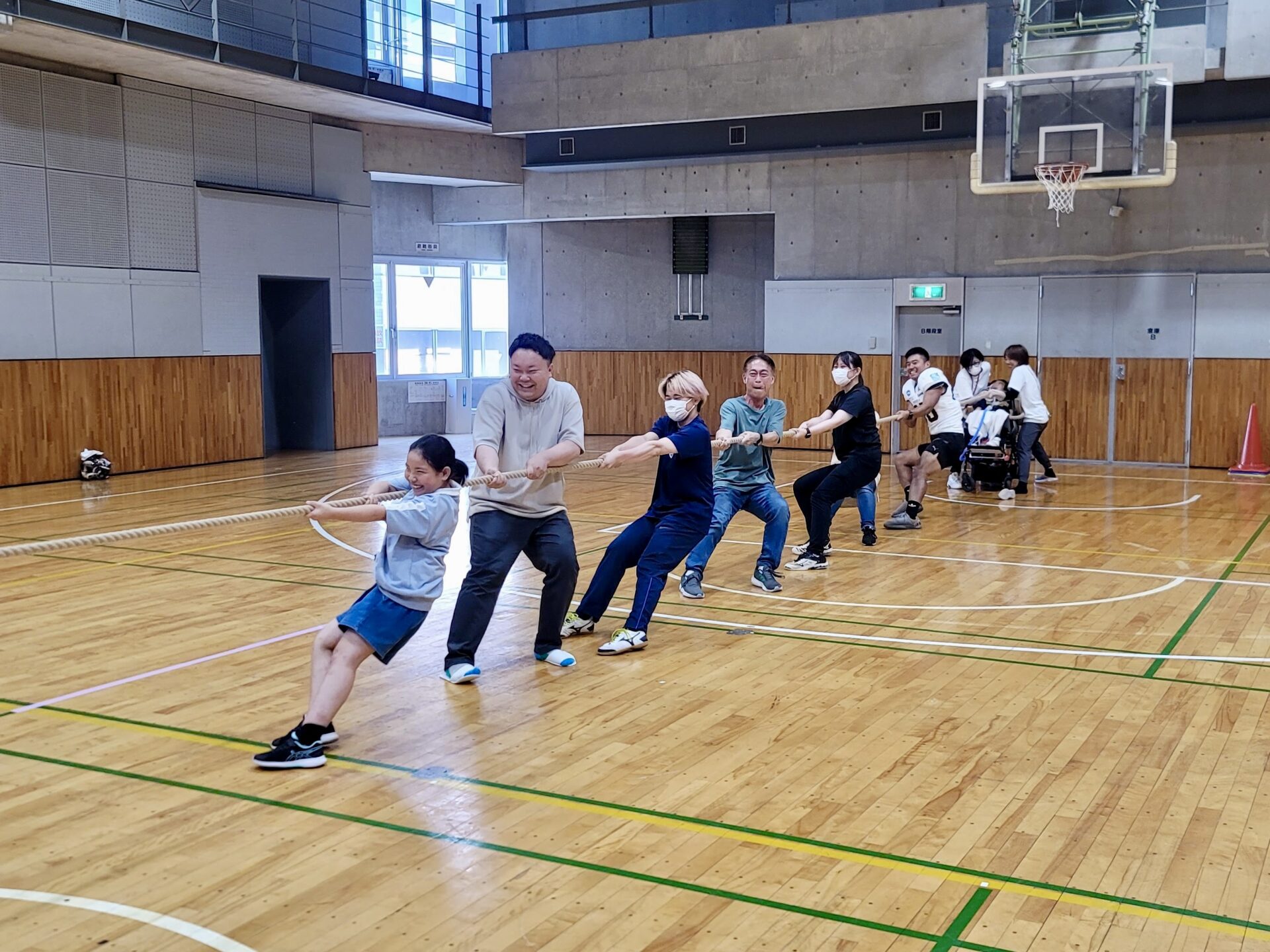 バスケドリブルリレーと綱引きを楽しみました。