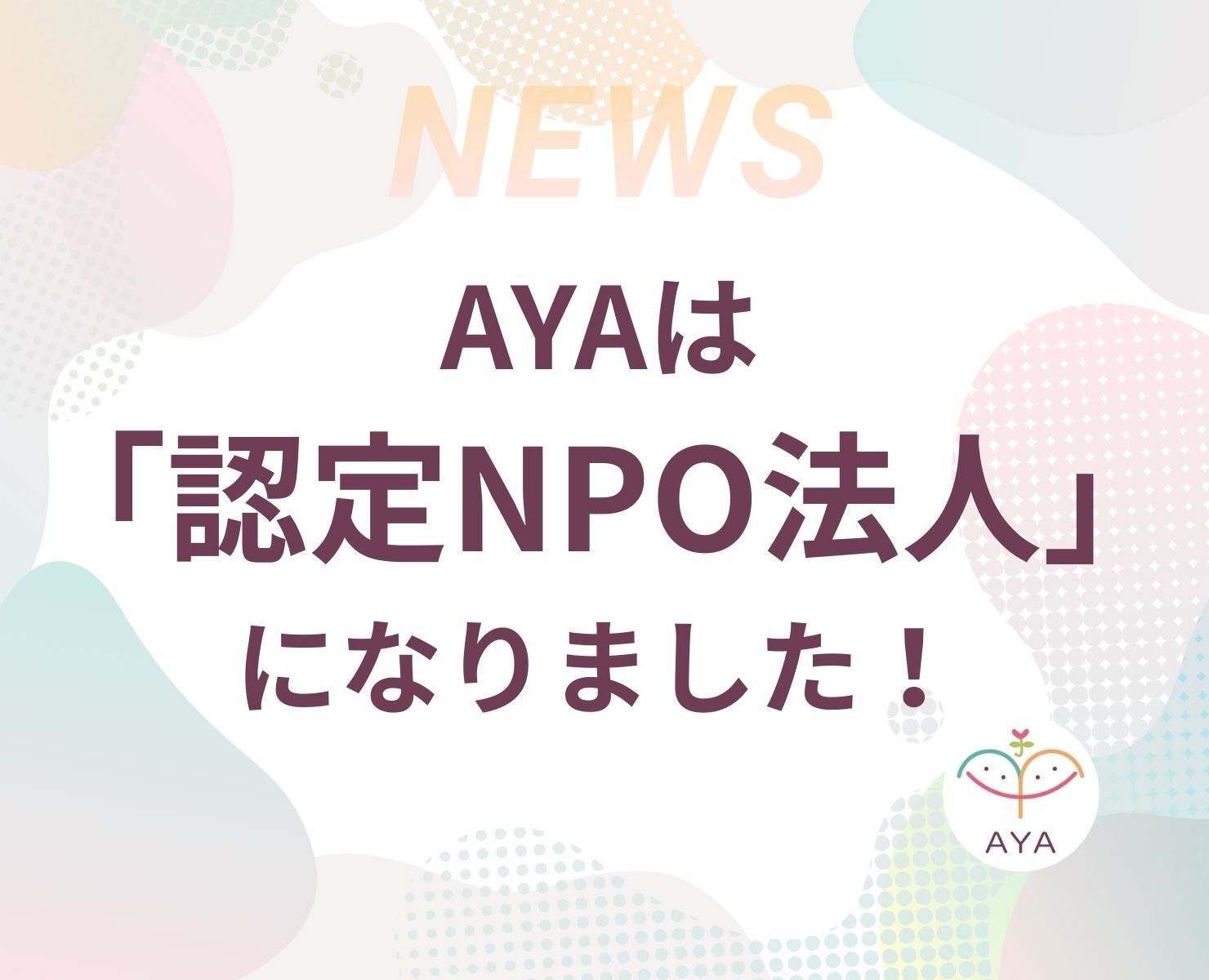 2/3 AYAは認定NPO法人になりました!