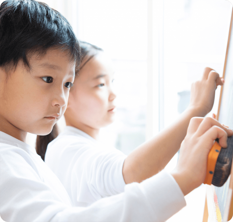 We provide opportunities for children to take on a challenge in a wide range of areas including music, painting, sculpture, theater, movie, and dance.